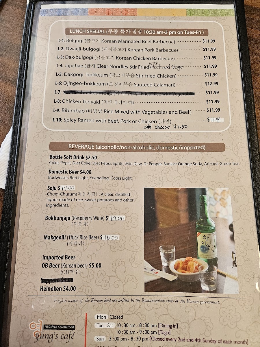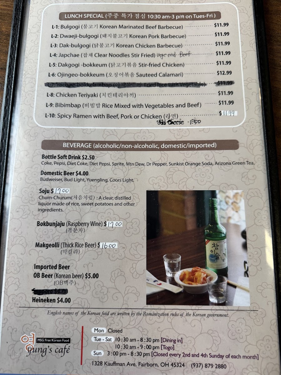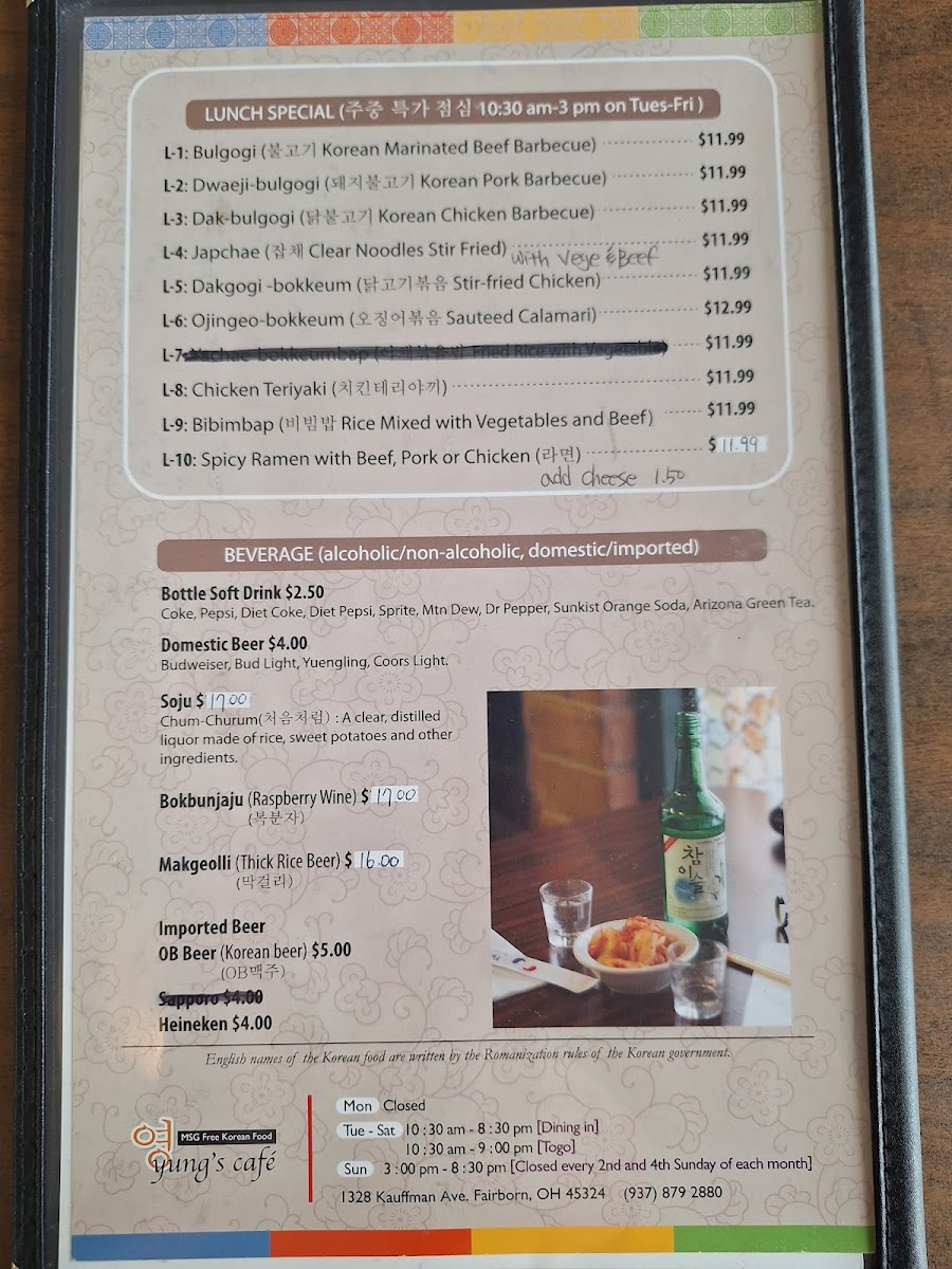 Welcome to Yung's Cafe, your go-to destination for authentic Korean cuisine nestled in Fairborn, OH. Located at 1328 Kauffman Ave, this charming eatery invites you to experience the vibrant flavors of Korea, all served in a casual and friendly atmosphere. Whether you're a seasoned fan of Korean dishes or a novice eager to explore, Yung's Cafe promises a delightful experience for everyone.